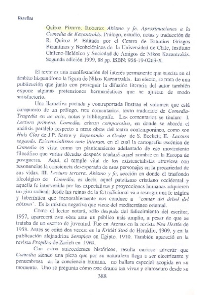 Acerca de Nikos Kazantzakis de Roberto Quiroz Pizarro [artículo]Nelson Rodríguez Arratia.