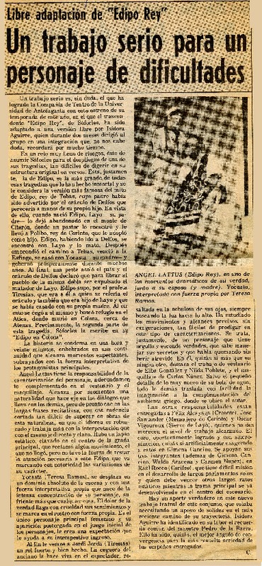 El "Edipo Rey" de Isidora Aguirre mantine espíritu de la tragedia [artículo].
