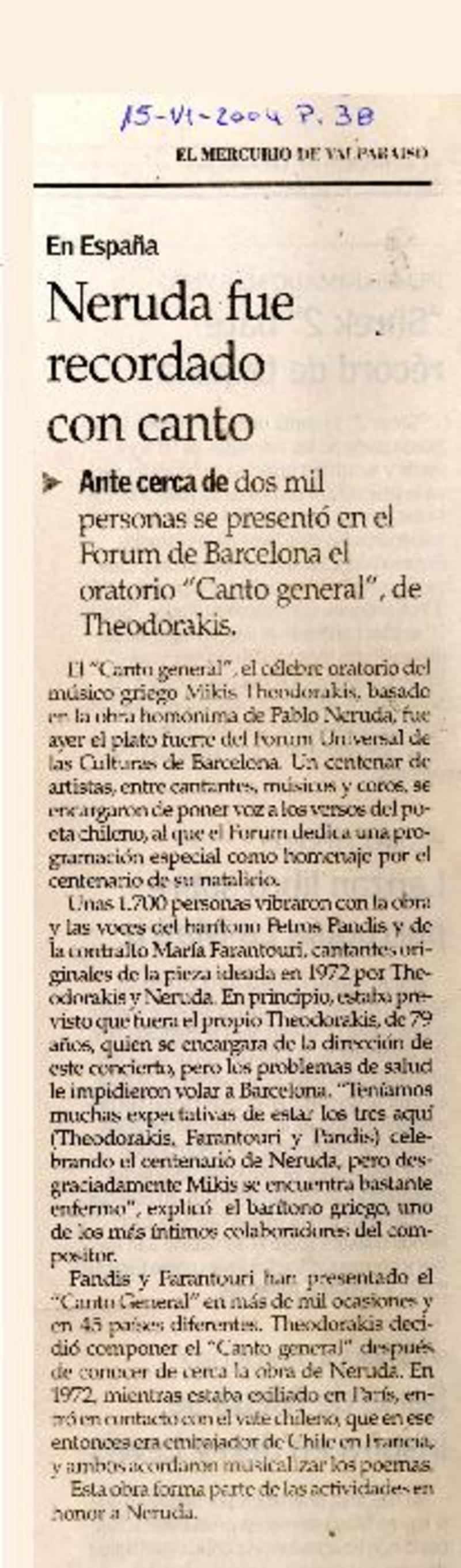 Autores chilenos - Neruda, Pablo - Canto general - Autores griegos - Theodorakis, Mikis