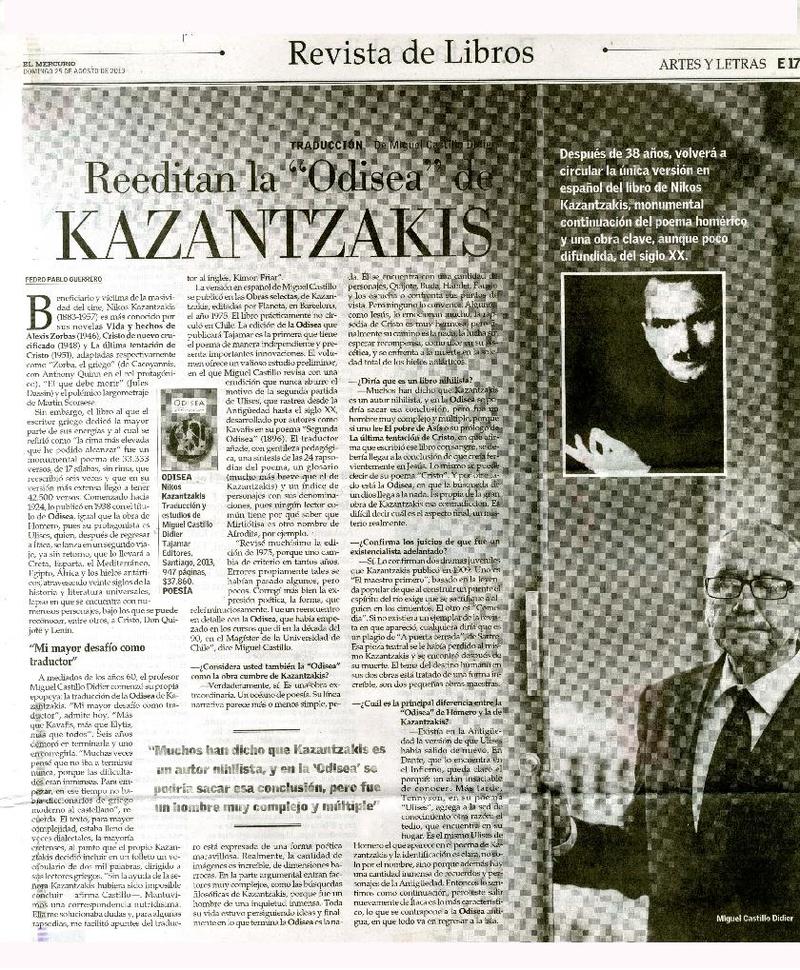 Autores chilenos - Autores griegos - Kazantzakis, Nikos - Castillo Didier, Miguel