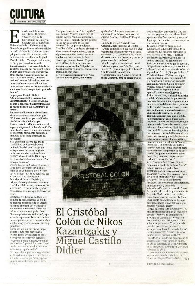 El Cristóbal Colón de Nikos Kazantzakis y Miguel Castillo Didier [artículo] Fernando Quilodrán