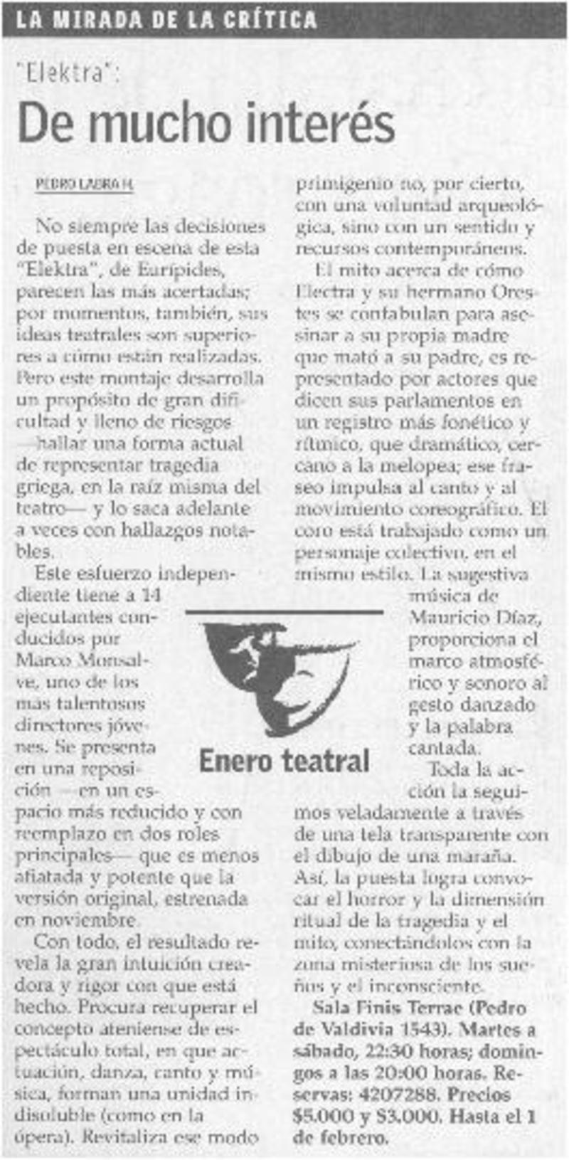 Autores chilenos - Autores griegos - Euripides - Elektra - Monsalve, Marco