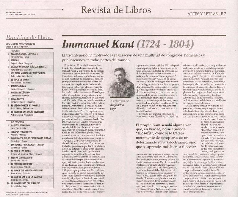 Immanuel Kant (1724-1804) [artículo] Alejandro Vigo.