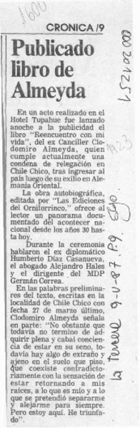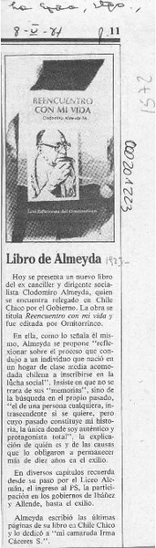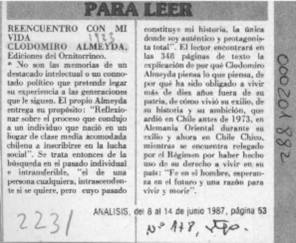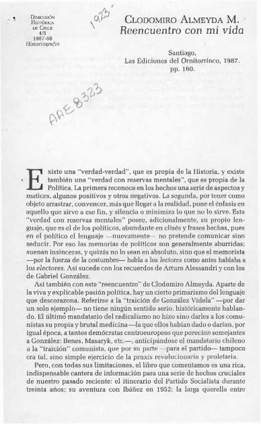 Clodomiro Almeyda M. "Reencuentro con mi vida" [artículo] Gonzalo Vial.