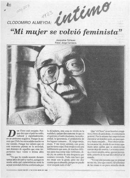 Clodomiro Almeyda íntimo, "Mi mujer se volvió feminista" [artículo] Jacqueline Tichauer.