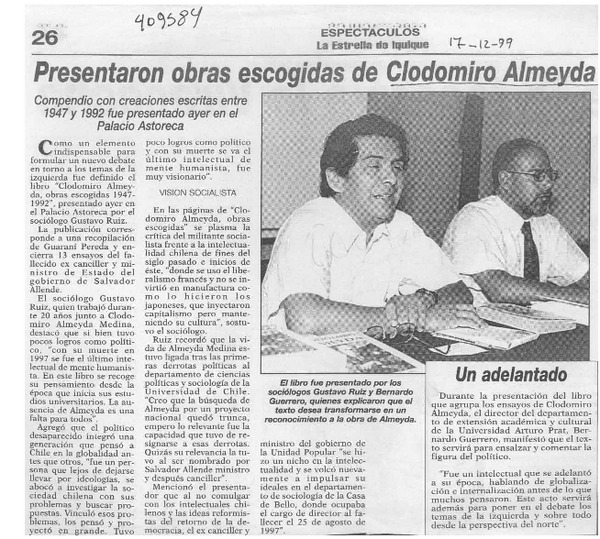 Presentaron obras escogidas de Clodomiro Almeyda [artículo].
