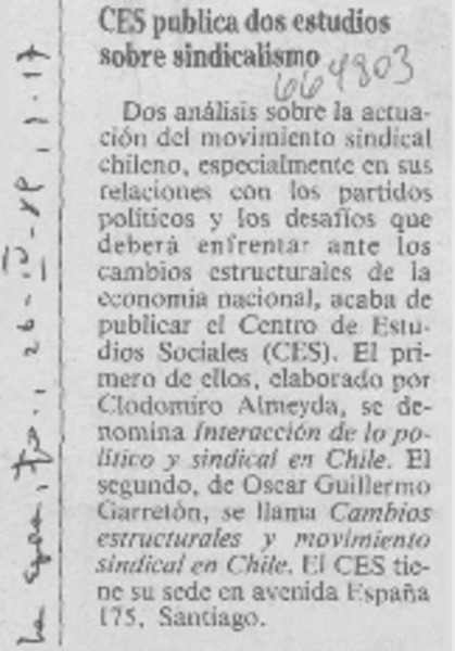 CES publica dos estudios sobre sindicalismo. [artículo]