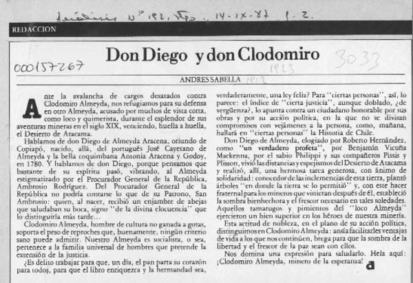 Don Diego y don Clodomiro [artículo] Andrés Sabella.