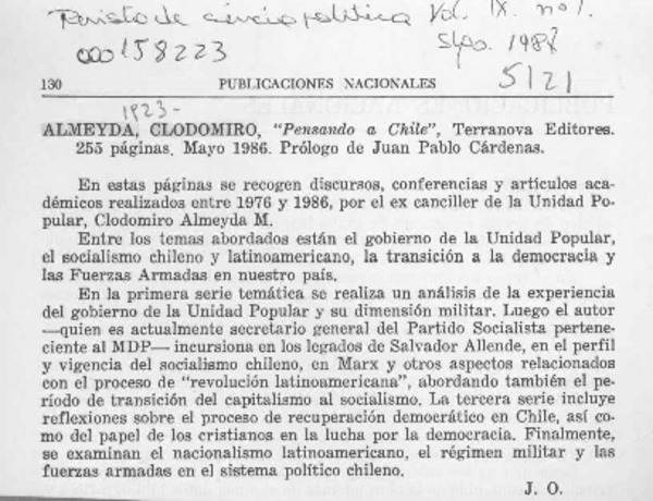 Autores chilenos - Almeyda, Clodomiro - [entrevista]