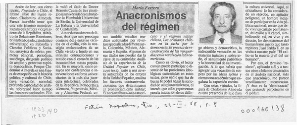 Anacronismos del régimen [artículo] Mario Ferrero.