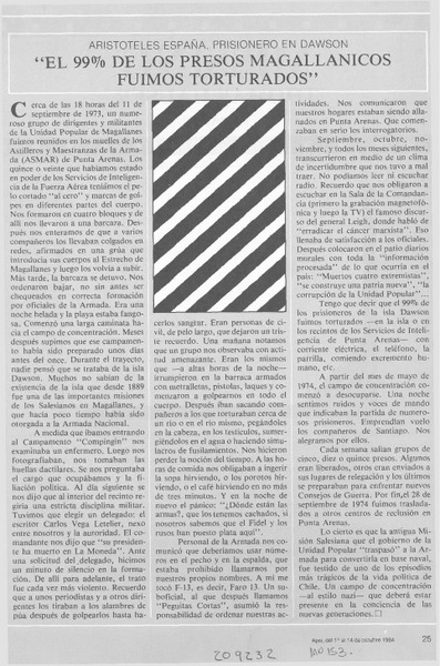 "El 99% de los presos magallánicos fuimos torturados" [artículo].