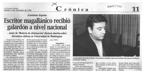 Escritor magallánico recibió galardón a nivel nacional [artículo].
