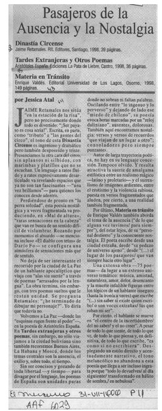 Pasajeros de la ausencia y la nostalgia [artículo] Jessica Atal.