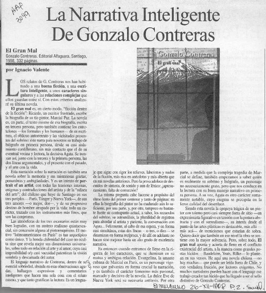 La narrativa inteligente de Gonzalo Contreras [artículo] Ignacio Valente.