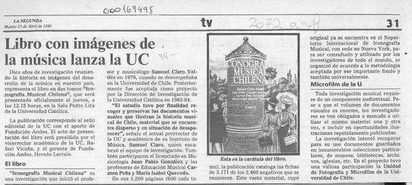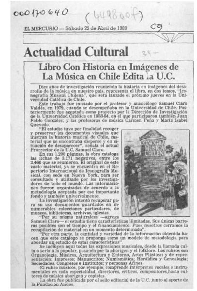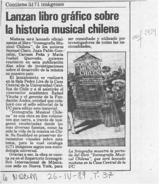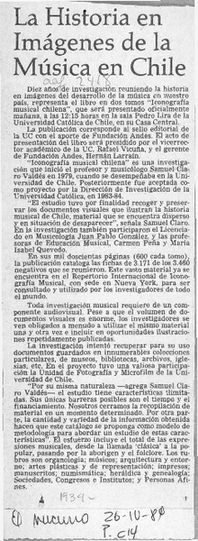 Libro con historia en imágenes de la música en Chile edita la U.C. [artículo].