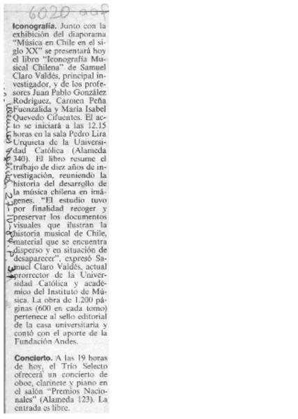 González Rodríguez, Juan Pablo - Peña F., Carmen - CLARO VALDES, SAMUEL - ICONOGRAFIA MUSICAL CHILENA - Quevedo Cifuentes, María Isabel