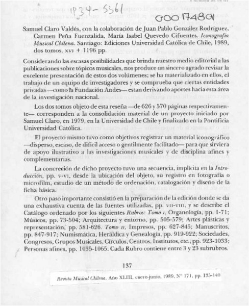 Iconografía musical chilena [artículo] Raquel Bustos Valderrama.