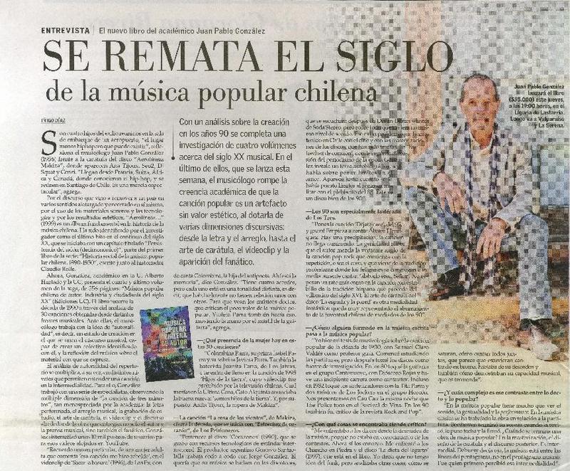 Se remata el siglo de la música popular chilena [entrevista] [artículo] : Iñigo Díaz.