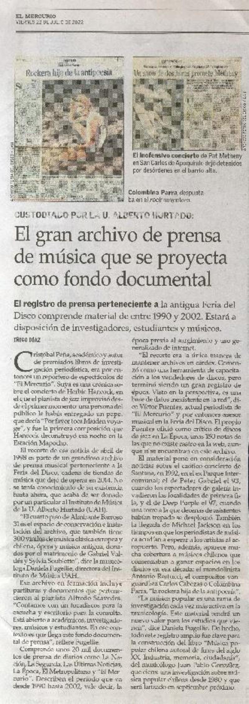 El gran archivo de prensa de musica que se proyecta como fondo documental [artículo] Iñigo Díaz.