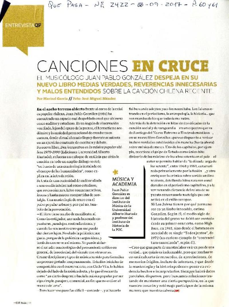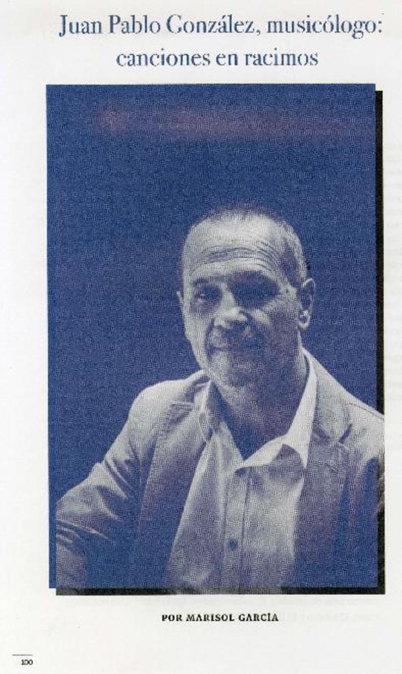 Juan Pablo González, musicólogo: canciones en racimo [entrevista] [artículo] : Marisol García.