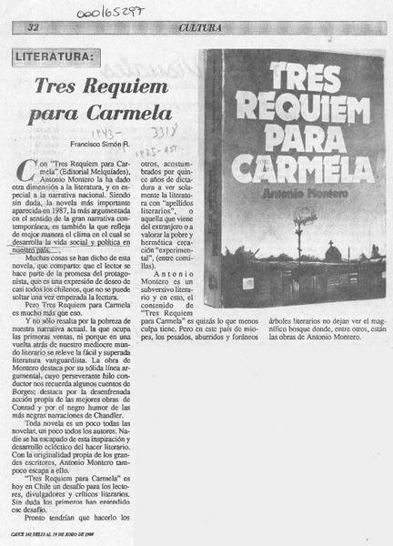Tres Requiem para Carmela [artículo] Francisco Simón R.
