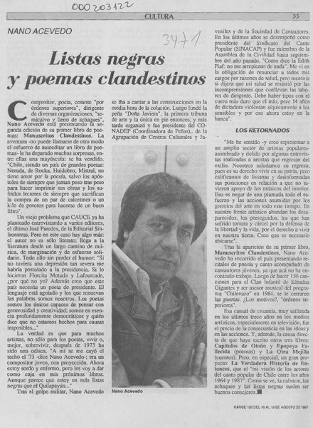 Autores chilenos - Acevedo, Nano - Manuscritos clandestinos