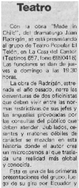 Autores chilenos - Radrigán, Juan - Made in Chile