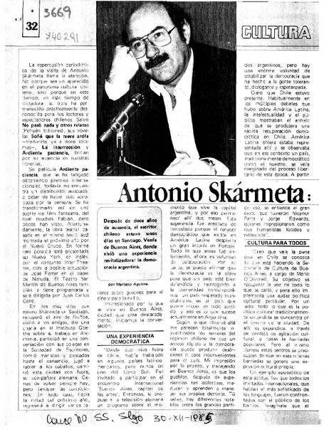 Antonio Skármeta [artículo] Mariano Aguirre.