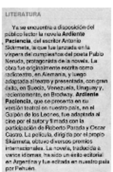 Autores chilenos - Skármeta, Antonio - Ardiente paciencia
