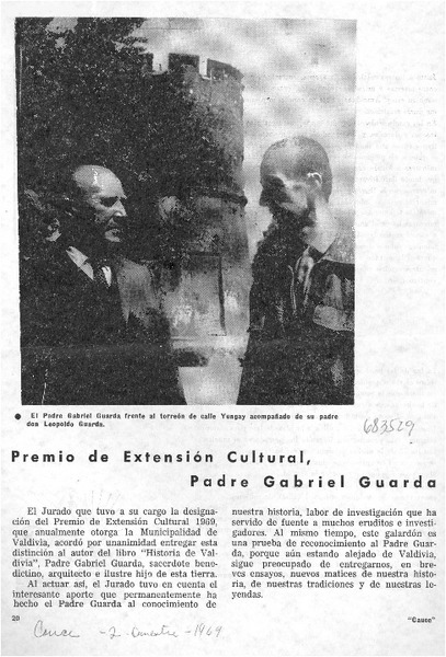 Premio de extensión cutural, Padre Gabriel Guarda [artículo].