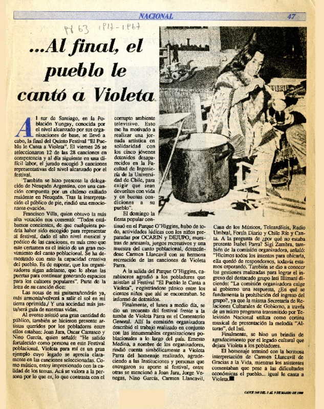 Al final, el pueblo le cantó a Violeta. [artículo]
