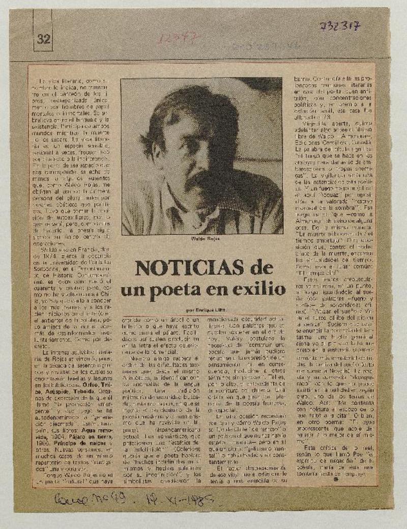 Noticias de un poeta en exilio [artículo] Enrique Lihn.