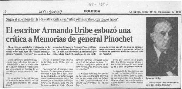 El Escritor Armando Uribe esbozó una crítica a Memorias de general Pinochet [artículo].