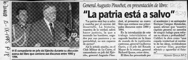 "La patria está a salvo" [artículo] Hernán García M-C.