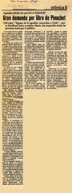 Gran demanda por libro de Pinochet [artículo].
