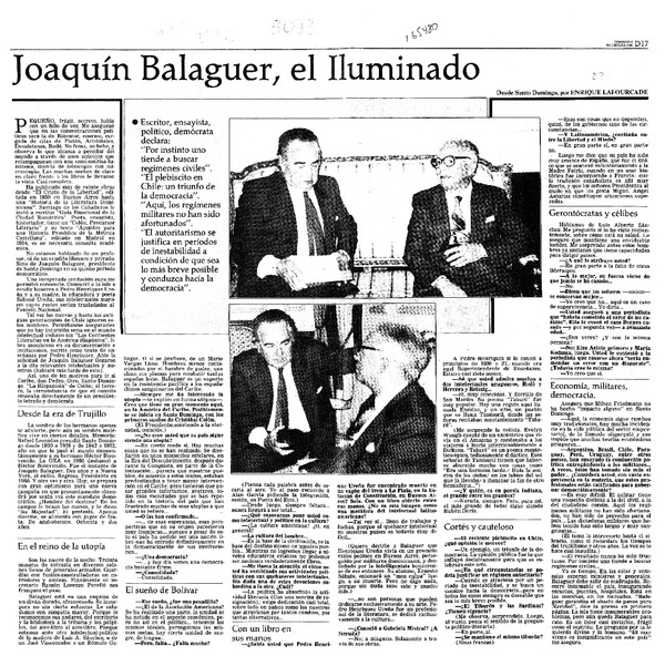 Joaquín Balaguer, el iluminado [artículo] Enrique Lafourcade.