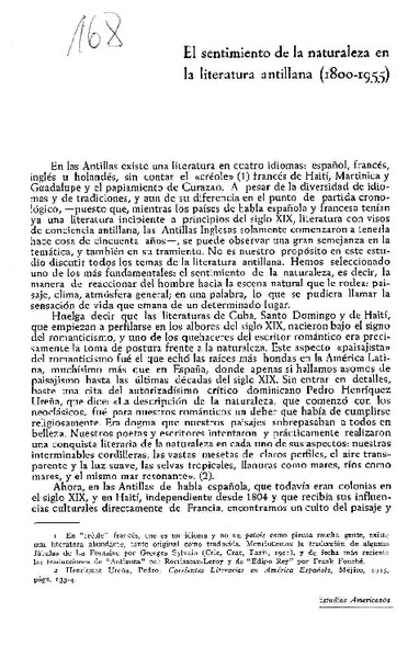 El sentimiento de la naturaleza en la literatura antillana (1800-1955) [artículo] G. R. Goulthard.