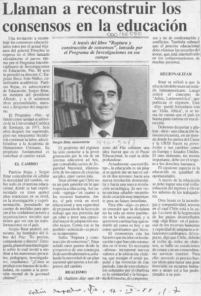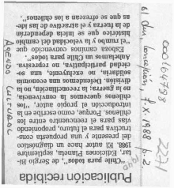 Presentan libro "Chile en el umbral de los 90" [artículo].