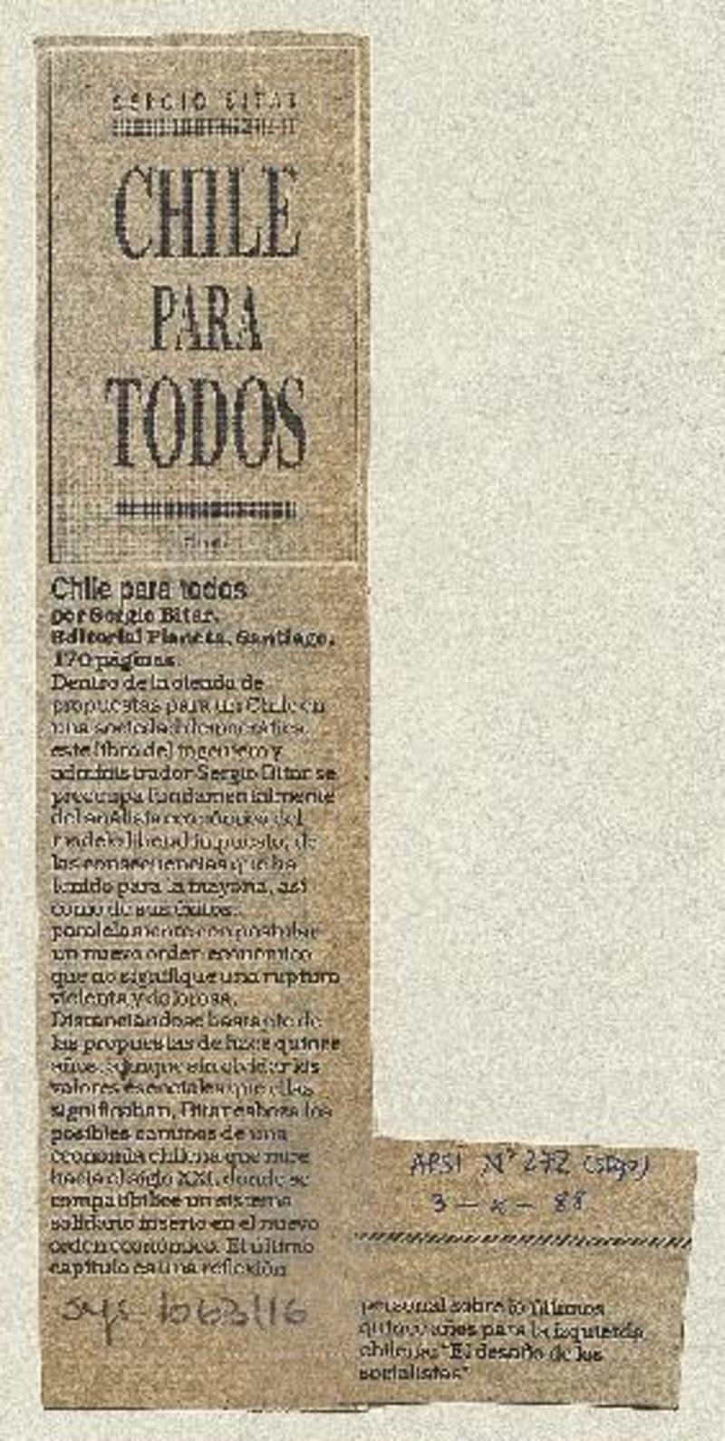 Bitar, Sergio - Chile para todos - Empresa de la libertad - Autores chilenos - Foxley, Alejandro - Chile puede mas - Feliú, Manuel
