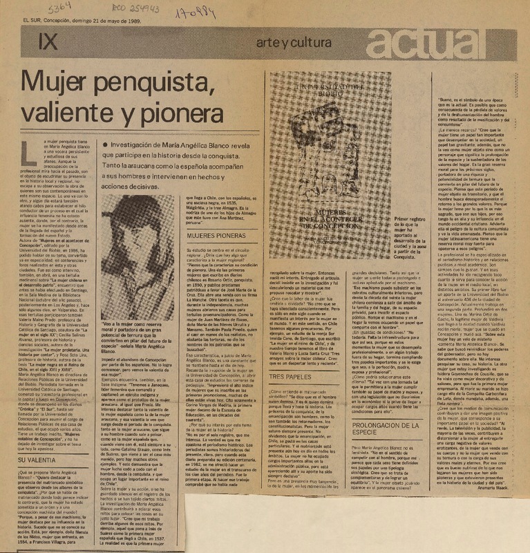 Mujer penquista, valiente y pionera [artículo] Anamaría Maack.