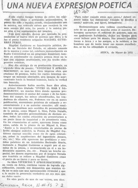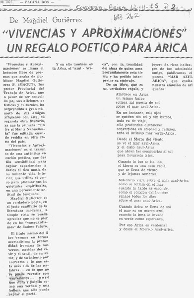 "Vivencias y aproximaciones" un regalo poético para Arica. [artículo]