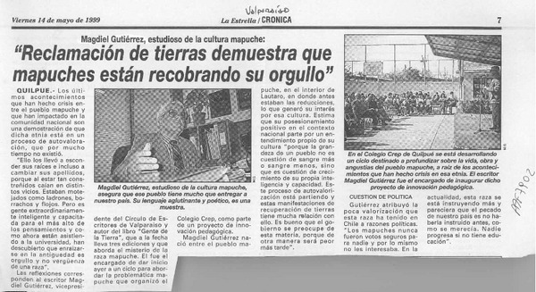 "Reclamación de tierras demuestra que mapuches están recobrando su orgullo" [artículo].