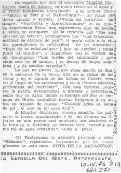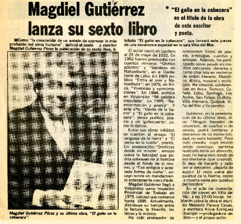 Magdiel Gutiérrez, poeta de Arauco [artículo] Andrés Sabella.