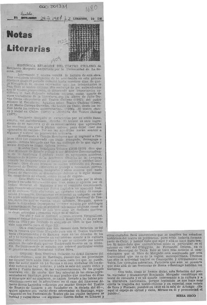 Histórica relación del teatro chileno [artículo] Manuel Francisco Mesa Seco.