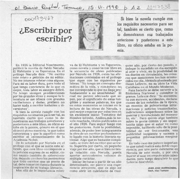 Escribir por escribir? [artículo] Juan José Irarrázaval.