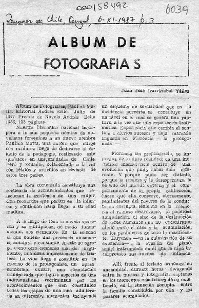 Album de fotografías [artículo] Juan José Irarrázaval Yáñez.