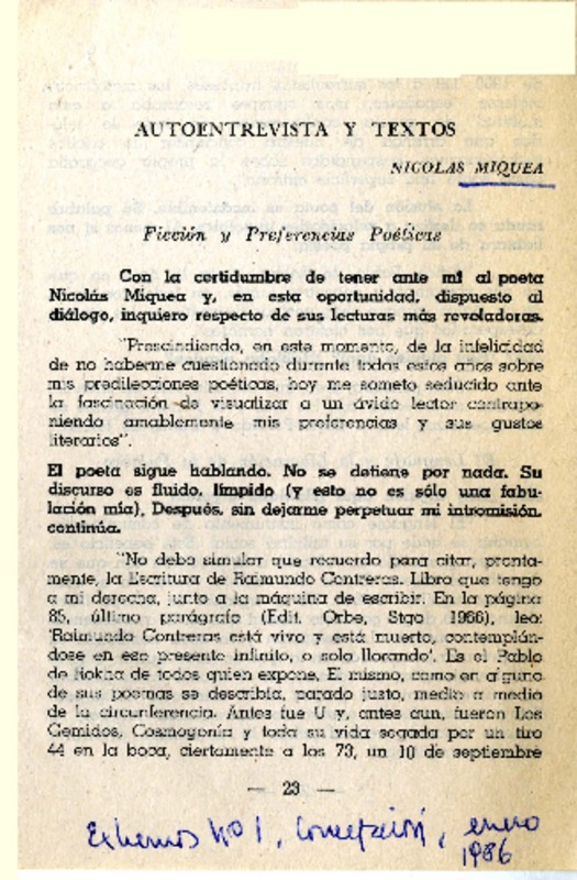 Autoentrevista y textos [artículo] Nicolás Miquea.