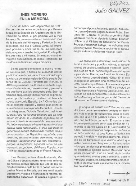 Inés Moreno en la memoria [artículo] Julio Gálvez.