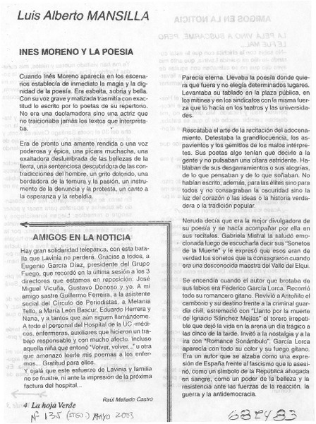 Inés Moreno y la poesía [artículo] Luis Alberto Mansilla.