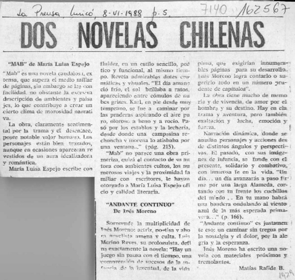 Autoras chilenas - Moreno, Inés - Espejo, María Luisa - Mab - Andante continuo